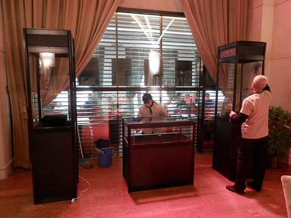 主要器材組成:八棱柱、八棱柱支座、鎖件、連板、雙面pvc展板、玻璃、射燈等有效的組合。其特點是裝卸快捷、便于運輸、節省存儲空間。